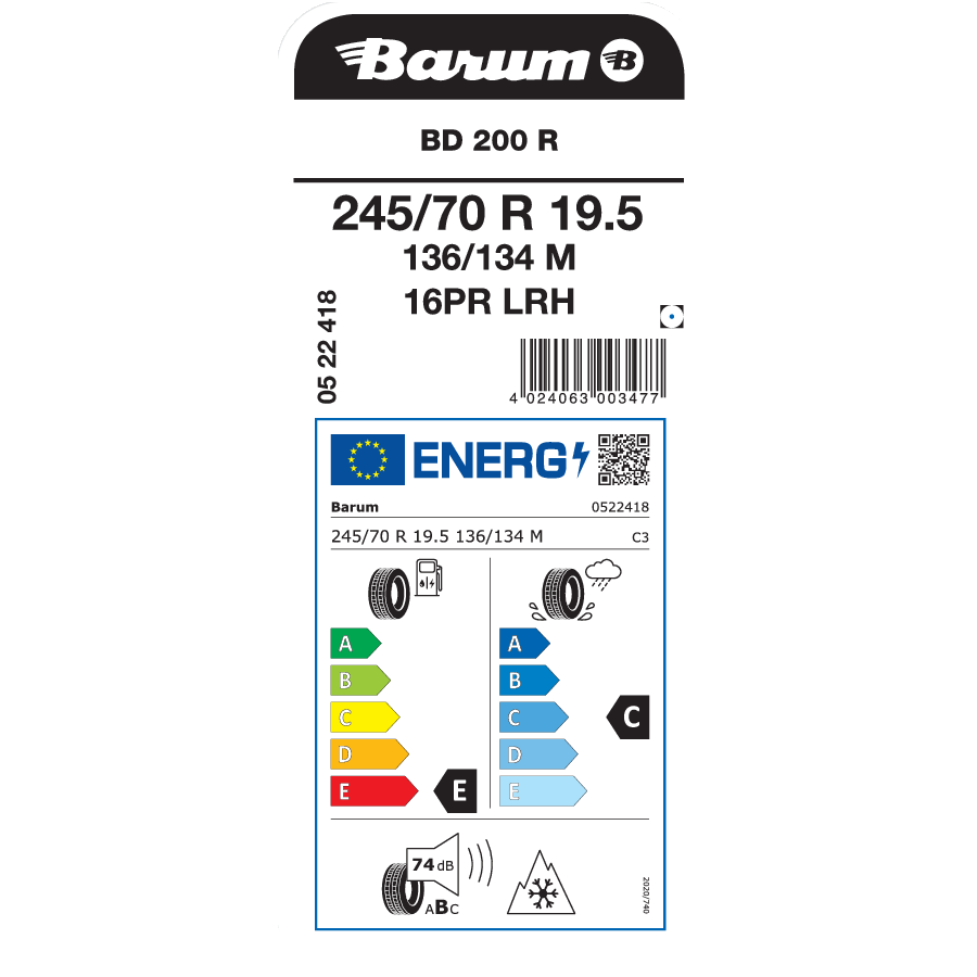 245/70R19.5 — BARUM BD 200 R 136/134M PR16 SL SSC M+S 3PMSF Reg.